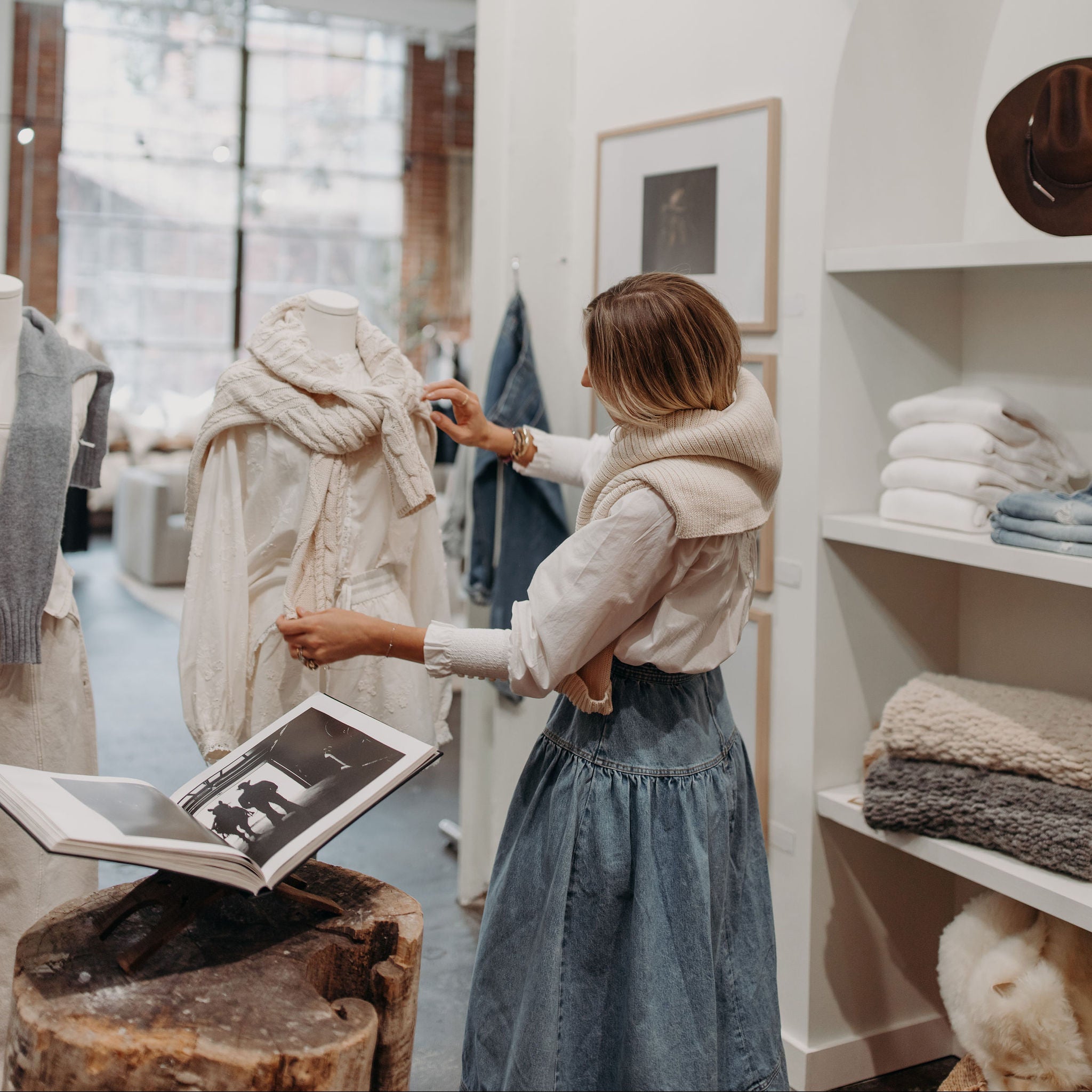 The aesthetic is rooted in modern heritage — structured denim, natural fibers, refined tailoring, and feminine silhouettes balanced with subtle western influence. The result is a wardrobe that feels collected, not consumed.