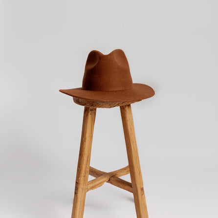 First, we get you properly sized, discuss color options as well as crown and brim styles. Once you have chosen your hat shape and color, we then style it. Choose from our beautifully curated hat bar of suedes, leathers, hand dyed silks, feathers and pins for additional customization. Lastly, we offer unique branding to truly customize your hat!